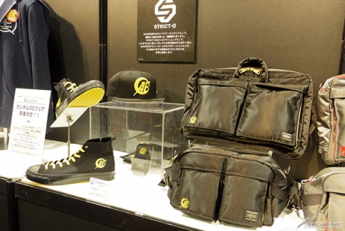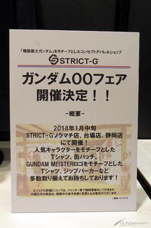 男性成衣品牌「STRICT-G」專區除了有介紹最新商品之外,預訂於2018年1月中旬舉行的「鋼彈00祭典」中所販售的部分商品也提前展出!
