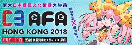 日本最大規模的參與型娛樂活動「C3」,將轉變為「C3AFA HONG KONG 2018」於2月9日(五)至11日(日)止共計3天期間,於香港的香港會議展覽中心舉行。預售票HK$30、當日票HK$35。