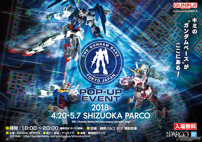 凝聚鋼彈複合設施「THE GUNDAM BASE TOKYO(鋼彈東京基地)」魅力的“THE GUNDAM BASE TOKYO POP-UP EVENT”,決定將於4月20日(五)起在靜岡PARCO登場,活動為免費入場。