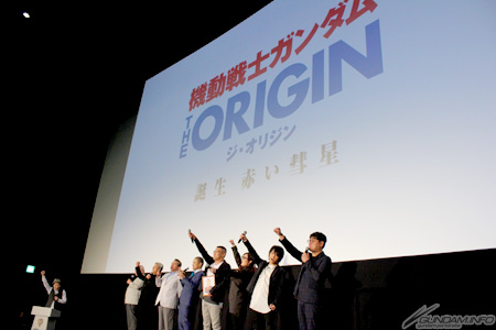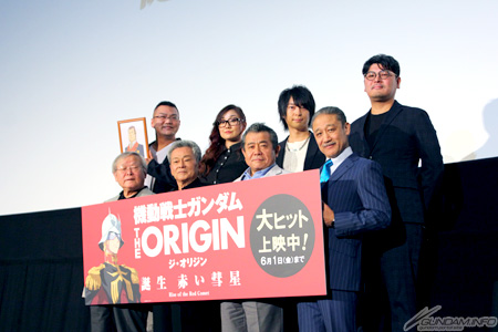 開場的問候中,安彦總監督表示「總覺得時間的流逝就跟做夢一樣快速,這4年多的時間內做了6個多小時的影片。本來以為還會經歷更辛苦的事,但多虧各位支持,過了一段幸福的時光,真的是十分感謝」,闡述了對於『THE ORIGIN』系列完結的想法。