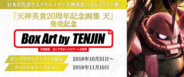於鋼彈模型複合施設「鋼彈東京基地」舉辦中的「BoxArt by TENJIN~天神英貴 鋼彈模型外盒插圖的世界~」,將在11月10日(六)舉辦談論關於外盒插圖的「特別座談會」和「簽名會」。