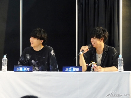 舞台請到了飾演悠人的小林千晃、飾演風見的水中雅章、機械設計的海老川兼武、BANDAI SPIRITS HOBBY事業部的清宮僚太和MC的綾見有紀登台。提早一步傳達了關於作品中登場的機械及鋼彈模型的最新情報,馬上就來報導其樣貌吧。