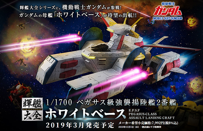 「輝艦大全(KIKAN*TAIZEN)」是以“大人的艦隊收藏”為題材,以精密的造型、充滿厚重感的塗裝,以及光澤表現為製作概念立體化的已塗裝完成品系列。藉由本次推出的「白色基地」,實現鋼彈作品眾盼已久的首次參戰。