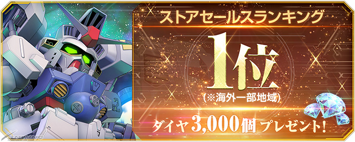 為了紀念在部分海外地區的店鋪銷售排名中取得第一名的成就,每個人都將獲得 3,000 顆鑽石(10 個 gashas)。