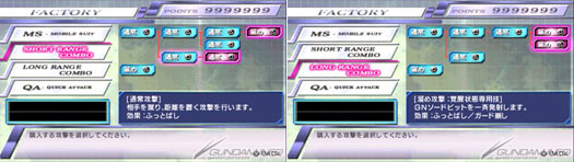 連段是依據各機體的特色而設計,有各式各樣的攻擊方法,有的還具有特殊效果,還請大家在闖關的時候,臨機應變運用MS及其連段!