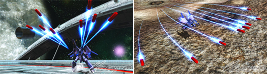 【飛行形態】飛行形態時的格鬥攻擊,將會對敵機進行肩膀衝撞。