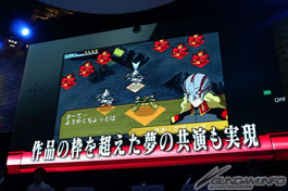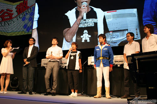 著手開發各遊戲的製作人們登台後,特別來賓的鋼彈藝人土田晃之、模仿阿姆羅的藝人若井修、以及大家所熟悉飾演阿姆羅・雷的聲優-古谷徹登場。