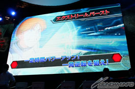 PV於舞台上亮相, PS3版除了有用Boost Dash和Step使出連段的「Extreme Action」,和在一定時間內強化的「Extreme Burst」等大型機台版中的機能外,還搭載有展開各種狀況之任務的「Trial Mission」,以及能與全日本的玩家進行通信對戰的「Online Battle」等家用版原創要素滿載。