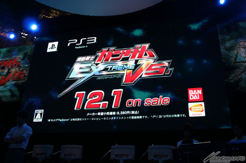 首先介紹的遊戲是預計於12月1日發售的PS3「機動戰士鋼彈 EXTREME VS.」。於大型機台上充滿人氣的「鋼彈VS.」系列最新作品,即將在家用遊戲機上登場相當受人注目。
