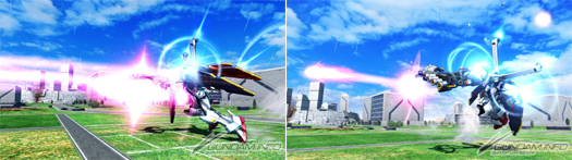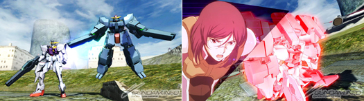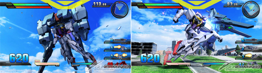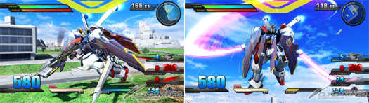 ▲特殊格鬥為「本體」與「熾天使鋼彈II」分離(左)。EX BURST(右)。