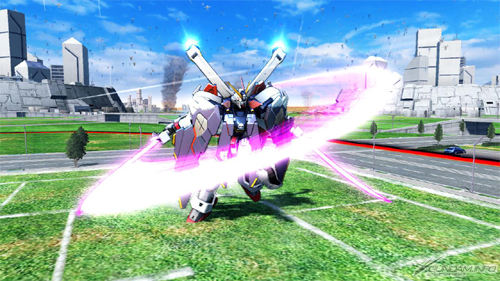 ▲特殊射撃為「GN大型加農砲【迴旋】」。一面迴轉一面掃蕩周圍的敵人。