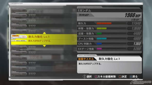 在「MS編輯」之中,可使用參加任務時獲得的「MP」強化機體的能力值。使用強化過後的機體後,說不定就可通過之前難以通過的任務了!?