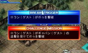 ▲達成條件時將出現新的敵人介入的「突破觸發條件」,和條件更加嚴苛的「挑戰任務」2種。「突破觸發條件」在1個關卡中準備了2個,達成第1個條件後將會提示出第2個條件。