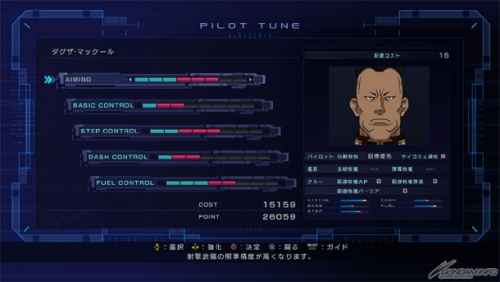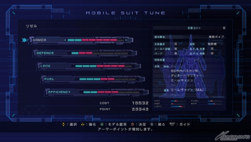 在本作中,不僅可使用遊戲中獲得的點數強化MS,還能夠強化駕駛員和武裝。能夠強化的項目如下。