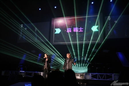 大賽由古谷 徹先生的(相片右起第2人)開賽宣言展開。並在鵜島仁文先生(相片中央)的『機動武鬥傳G鋼彈』片頭曲「FLYING IN THE SKY」演唱聲中揭開序幕。