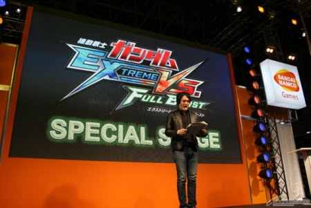 於2 月17日(五)、18日(六)2日間舉行的「AOU2012 AMUSEMENT EXPO」。一般公開日為2月18日,於會場中的NAMCO BANDAI GAMES主舞台舉辦了預計於4月上旬開始營運的「鋼彈VS.」系列最新作「機動戰士鋼彈EXTREME VS. Full Boost」特別舞台活動。