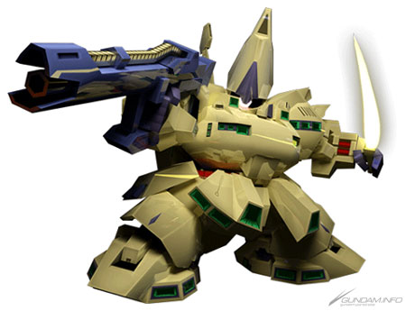 『機動戰士Ζ鋼彈』中登場的MS。武器3「光束步槍(高出力)」擁有「震撼」效果,藉此封住對手的行動,並用武器2的「光束步槍(低出力)」等武裝確實給予傷害為其基本戰術。在機體HP低於40%以下時,技能的效果將會提升機體性能,能夠發揮出相當強大的威力。