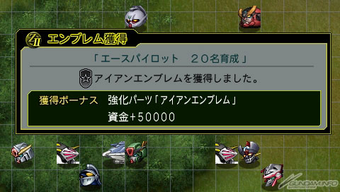 在本作中,我方駕駛員的敵機撃墜數一旦超過70即可成為「王牌駕駛員」,若是培育出20名王牌駕駛員即可獲得「鐵勳章」。