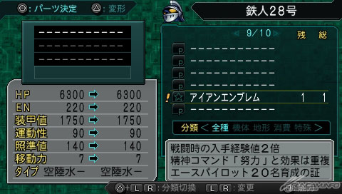 由於效果與精神指令「努力」重複,裝備了強化零件「鐵勳章」的狀態下再使用「努力」,即可獲得4倍經驗值。