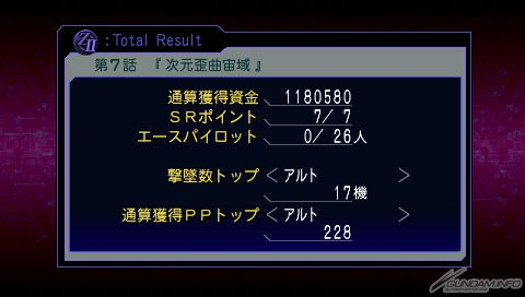獲得勳章的指示畫面,能夠確認所獲得的「資金」、「SR點數」和撃墜數第一的駕駛員等。