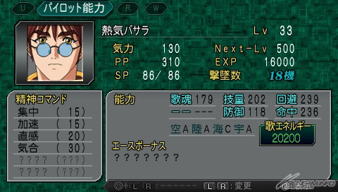 ▲巴薩拉的駕駛員能力中,設定有使用歌時必需的「歌能源」,和表示歌攻撃力的「歌魂」。