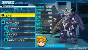 藉由更換雙手和雙腳的裝備,對應各種戰況的「G裝備」。本次公開的遊戲原創G裝備為鋼彈AGE-1的「強襲型」,和鋼彈AGE-2的「不死鳥型」與「斬鐵型」。
