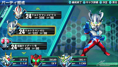 本回以隊伍角色身分參戰的有「00鋼彈」、「飛翼鋼彈零式」、「超人力霸王零號」、「假面騎士 BLACK RX」等角色和在這之前已經介紹過的角色,包含「ν鋼彈」、「超人力霸王梅比斯」、「假面騎士W」、「假面騎士OOO」 等新情報的戰鬥畫面將一同為大家介紹。