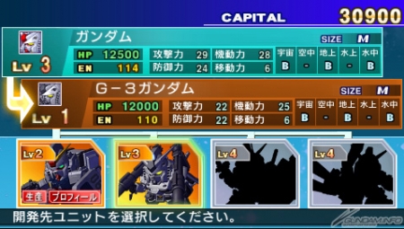 Lv3的鋼彈可以開發成陸戰型鋼彈和G-3鋼彈。