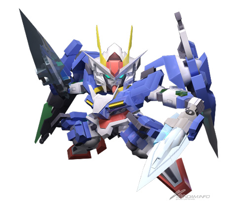 『機動戰士鋼彈00V戰記』中登場的MS。武裝變更前的武器3「GN劍II SHORT」相當厲害,被擊中的對手會有硬直、緩慢等效果之外,還能將超級裝甲無效化。另外,技能1的「七劍」會追加近距離攻擊時的傷害與對中距離武器防禦力上升,以及推進器回復速度增加等超高性能。