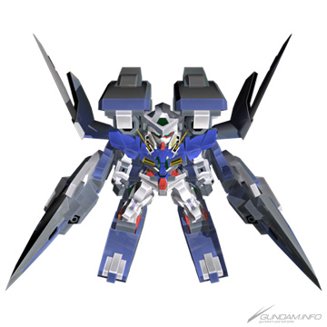 『機動戰士鋼彈00』中登場的MS。平時使用近戰格鬥用的武器1「大型GN劍」來發揮他在近戰中壓倒性的威力。另外,武器3的「大型 GN加農」則可以攻擊遠距離的對手,這種不論距離的戰鬥正是他的魅力所在。執行武裝變更之後,會脫去裝甲的一部份,在小地方的迴旋上變得更敏銳,但負面效益就是可以使用的武器就變成只有2種,請特別注意。