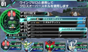 攻擊手是「太郎」與「1號」、治療是「W」、輔助則是「神威鋼彈」。
