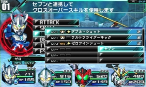 接著由Z使用技能「鎖定」,使零號的攻擊變成絕對命中。接著由W使用力量「支援・ACE」提高零號的間接攻擊力。