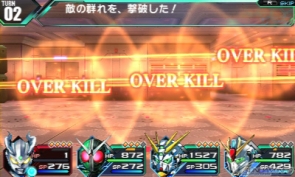 最後由零號發動間接攻擊DRIVE技能「廣域零號射線」,給予敵方全體極大的傷害造成OVEL KILL的狀態!