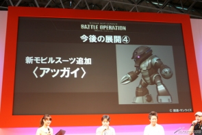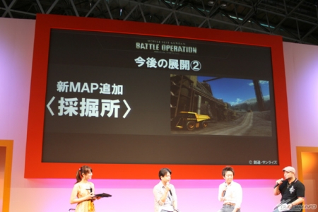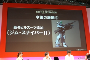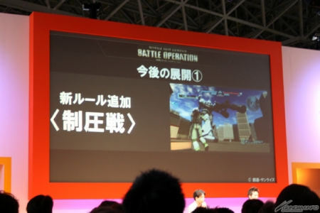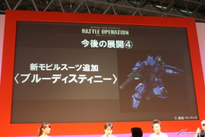 登上舞台的有NAMCO BANDAI GAMES的桑原 顕製作人,以及擔任監督的B.B.工作團隊徳島雅彦、擔任生產製作人的B.B.工作團隊大野 聡。發表許多今後展開的新規則「壓制戰」與新MAP「採掘場」與新MS的追加等等各式各樣的新情報。