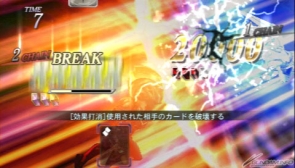 ▲戰鬥動作中一邊保留手中的卡片,一邊構築『効果取消套牌』。只是,對手使用「終結必殺技」的話,基礎攻擊力就非常的高,若是不做點什麼的話,就會輸掉審判(JUDEGMENT)。