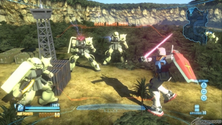 遊戲中完成「任務」就可以繼續下一關。通過眾多的任務關卡、擊破逼近的敵機來收集MS的零件吧。