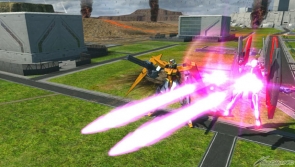 ▲特殊格闘武器「GN弓兵戰機【連續射撃】」則是讓GN弓兵戰機當場使用GN光束步槍進行三連射。將搖桿輸入左或右的指令進行特殊格闘時、GN弓兵戰機會往左右移動同時進行2連射。