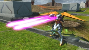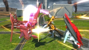 ▲GN弓兵戰機不僅會與主要射撃武器進行連動攻撃,也能活躍於特殊格鬥以及變形中的攻擊,是非常讓人安心的夥伴。此外、墮天使鋼彈本身也機動性也很高、可以使用彈數很多的射撃攻撃來壓倒對手。