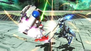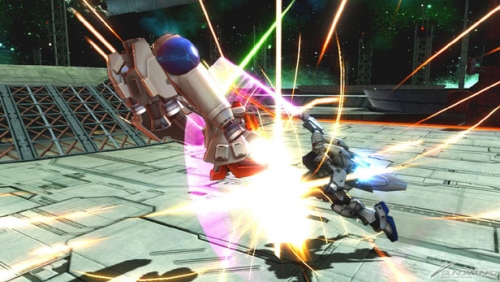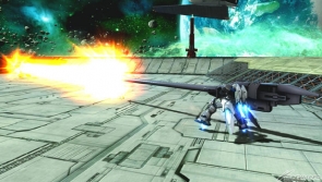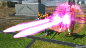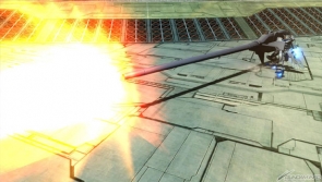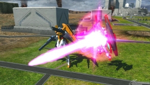 ▲EX爆發「零距離超絕光束砲」(爆發攻擊)則是以光束軍刀將敵方斬切向上之後與武器庫合體,再以超絕光束砲向對手突刺後進行零距離射撃。