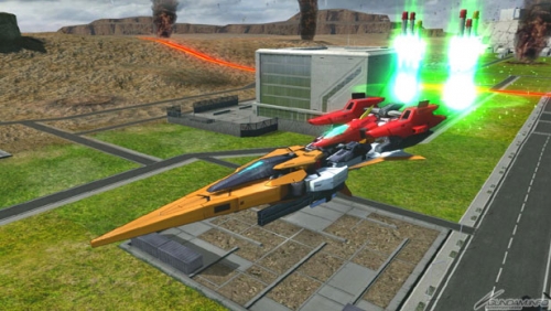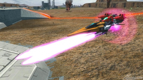 ▲特殊射撃武器是急速變形為MA形態、一邊移動一邊讓GN弓兵戰機發射GN飛彈。