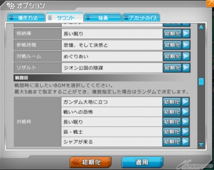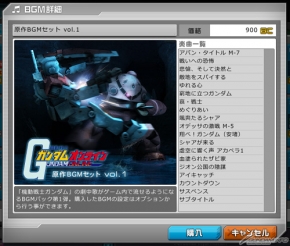 購入後就可以在遊戲中指定什麼時候播什麼樣的曲子。像是可以選擇在夏亞出現的時候撥放「夏亞來了(シャアが来る)」、在賈布羅進行大規模戰時選播「哀・戰士」的BGM。