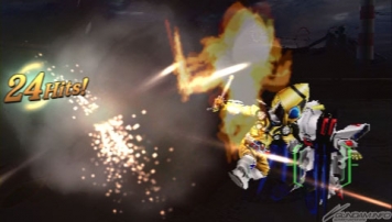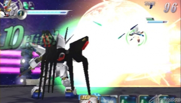 ▲攻擊自由鋼彈的遠距離SP CRASH「超級龍騎兵系統」一邊牽制對手,同時使用光束步槍射擊。