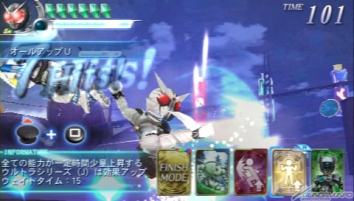 本作有「鋼彈」、「假面騎士」、「超人力霸王」系列中,總共有21名的正反派英雄參戰,展開1VS1爽快、華麗戰鬥的究極劇情性格鬥動作遊戲,「鋼彈」系列中有『機動戰士鋼彈00』中的「00強化模組」與「再生鋼彈」、 『機動武鬥傳G鋼彈』中的「神威鋼彈」與「天王鋼彈」、『∀鋼彈』中的「∀鋼彈」與「逆X」參戰。
