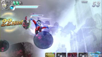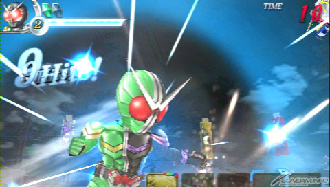▲必殺技各種可以在連擊的最後加入取消。假面騎士Fourze的「騎士100億BOLT BREAK」取消HIT!
