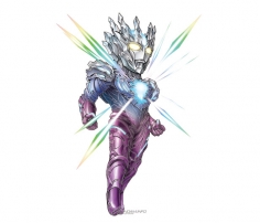 ▲超人力霸王ZEEO的特攻追擊。能一瞬間追上離遠的對手,並讓對手吃下一擊重擊,接著繼續發展為連擊。