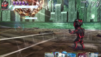 ▲假面騎士OOO的近距離SP CRASH「萊歐迪亞斯」。變身使用「獅虎豹COMBO」進行多段攻擊。連接連擊時相當有效。