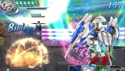 ▲在對手起身的時候使用00強化模組的遠距離必殺技「GN劍III步槍」照射HIT!