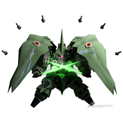 【武裝(武裝變更前)】 武器1 :光束軍刀 武器2:MEGA光束砲 武器3:火神砲 特殊攻擊:亂舞型 【技能】 技能1:防禦力上升 技能2:突擊指揮 |