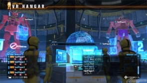 ▲機庫中會收納夥伴們的鋼彈模型喔。和單人模式相同,也是從這裡接收任務然後出擊!