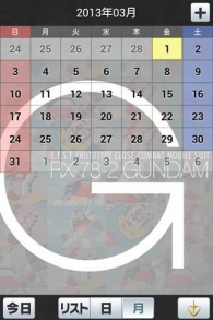 鋼彈行事曆 販售價格 : 免費 ※必須登錄成為auSMART PASS的付費會員。 購買方法 : auSMART PASS上配信中 服務開始 : 2013年3月1日 |